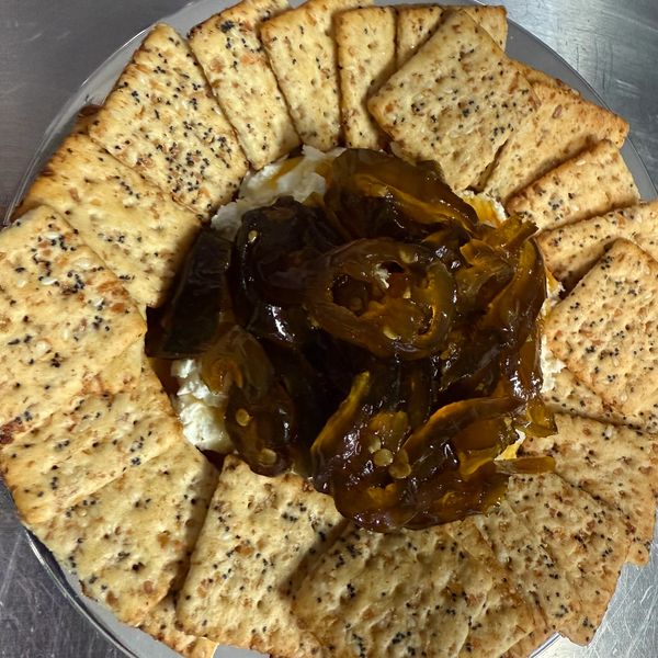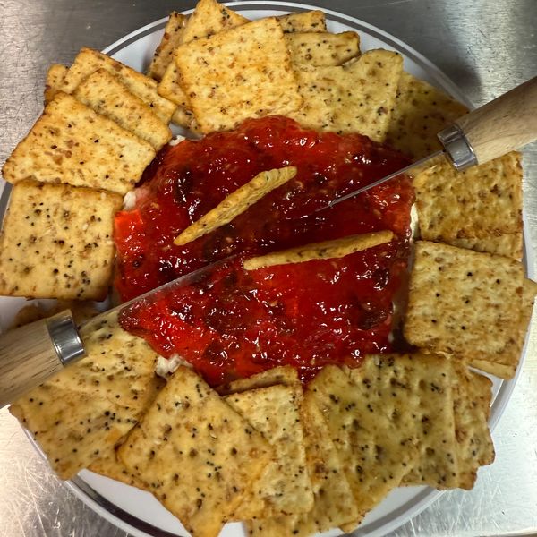 Cheese delight is cream cheese covered with your fave local made jam!